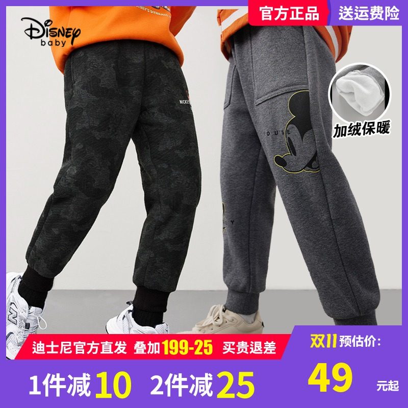 迪士尼童装男童卡通长裤春秋款儿童加绒休闲运动裤子洋气罗纹卫裤热门设计联盟服务商