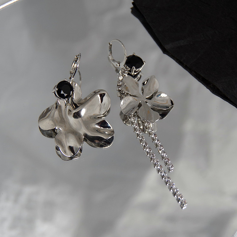 花朵不对称链条流苏耳圈银色高级感甜酷耳饰设计感锆石个性耳环女热门设计联盟服务商