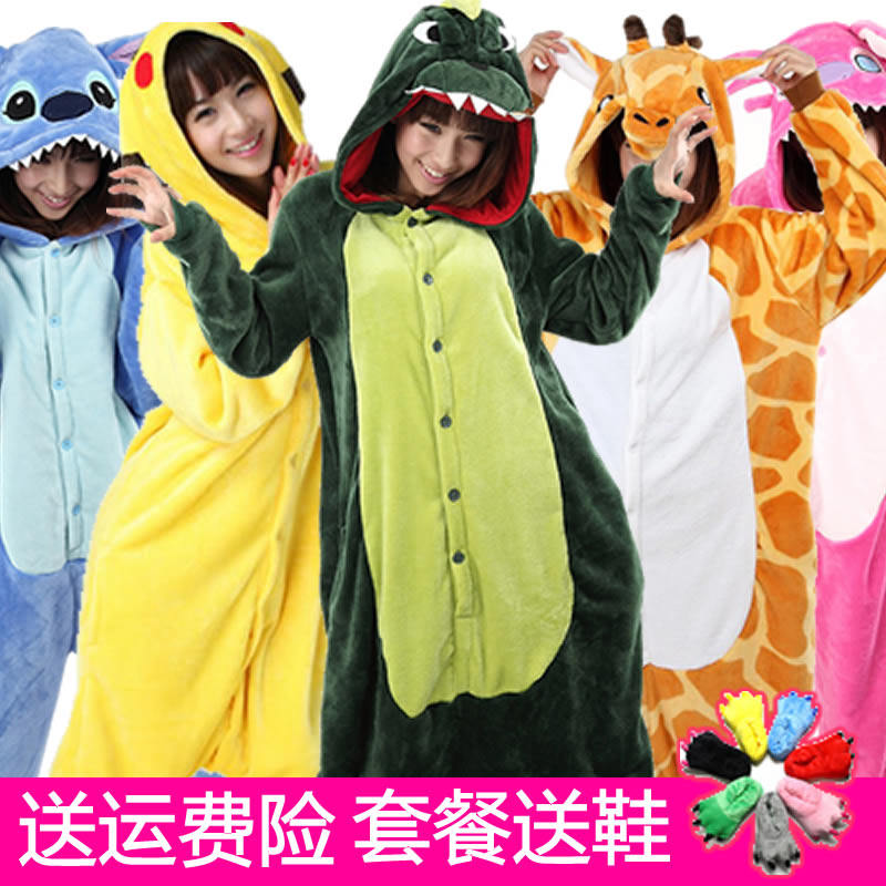 秋冬季法兰绒恐龙动物可爱连体睡衣皮卡丘成人卡通珊瑚绒男女情侣热门设计联盟服务商
