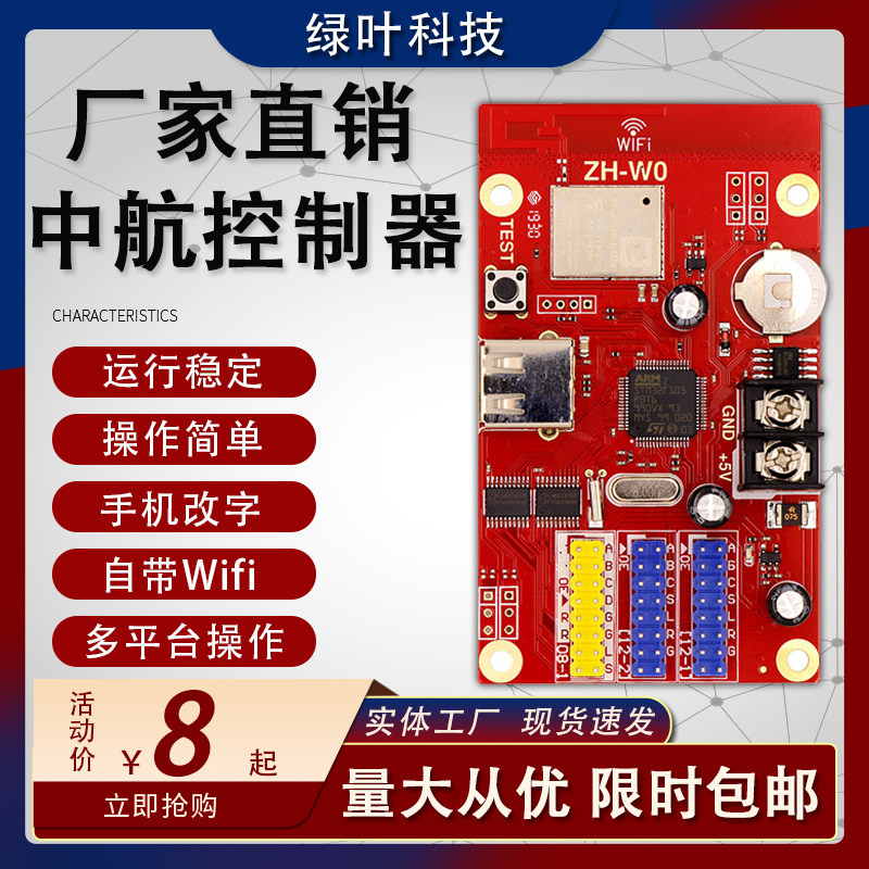 中航led广告显示屏控制卡wifi电子屏控制卡手机无线U盘滚动走字屏热门设计联盟服务商